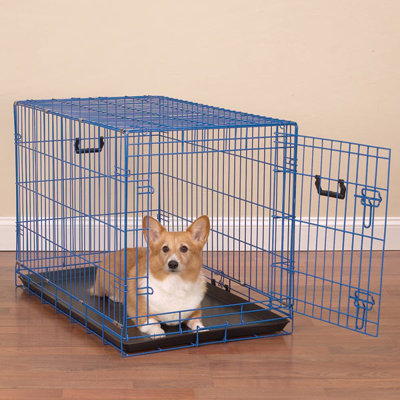 Travel or crate-train your pet in an Intermediate Blue Splash Colored Wire Pet Crate.